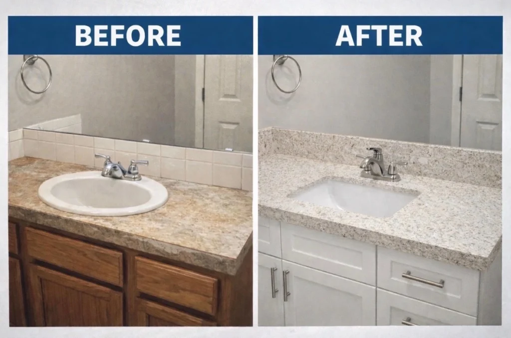 UPGRADED BATHROOM COUNTERTOP INSTALLATION - BEFORE & AFTER RESULTS